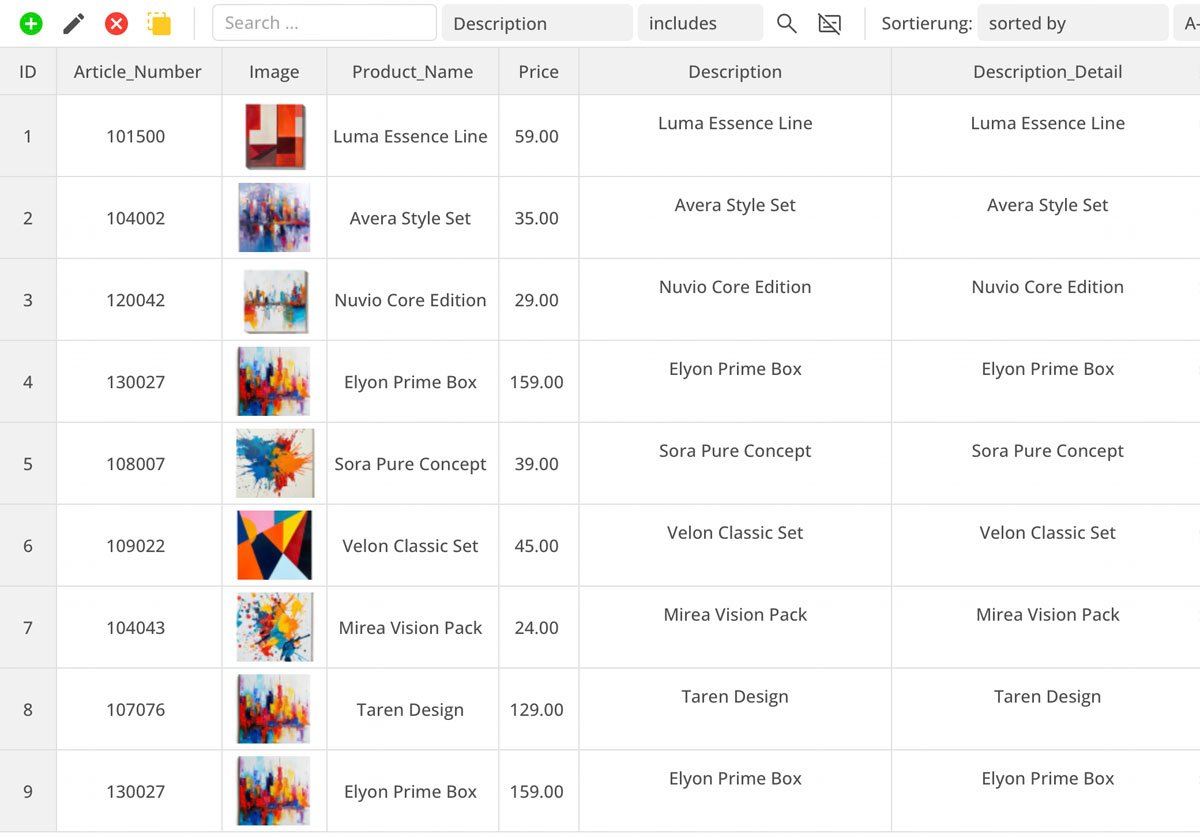 يمكن إدارة قاعدة البيانات بسهولة في شكل جداول. يمكنك إنشاء محتويات مثل مقالات المتجر أو مدونات بنفس سهولة نشر المشاركات على وسائط التواصل الاجتماعي.