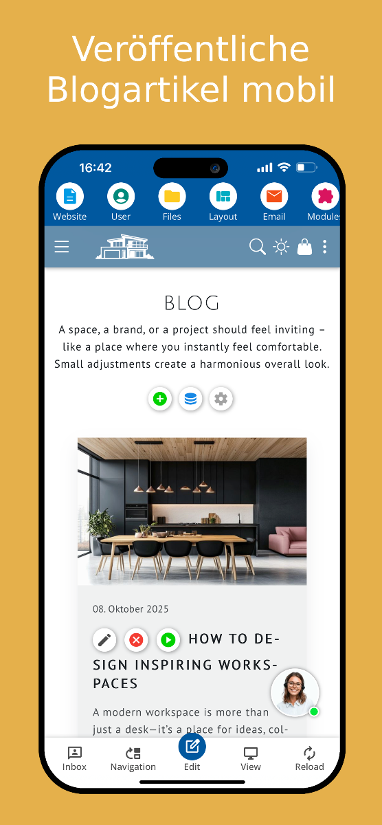 قم بإنشاء موقعك الإلكتروني أو متجرك الإلكتروني أو مدونتك بسهولة بنفسك – مباشرةً في التطبيق للهواتف الذكية والأجهزة اللوحية. قم بتحميل التطبيق من المتجر وجربه لمدة 10 أيام مجانًا.