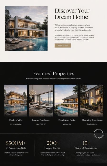 تبدو قائمة عقاراتك ككاتالوج حديث: صور معاينة، سعر، بيانات أساسية، ملاحظات الموقع وحالة العقار (جديدة، متاحة، محجوزة، مباعة). تساعد الفلاتر بسرعة في البحث: السعر، المساحة، الغرف، نوع العقار، التجهيزات. النتيجة: انخفاض في معدل المغادرة وزيادة في الاستفسارات المناسبة.