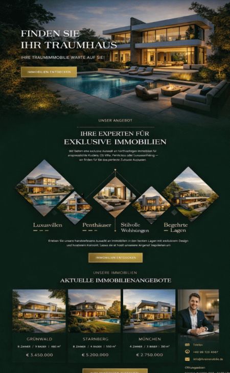 من خلال محرر bluetronix، يمكنك عرض شركتك بقوة: فريق، مناطق، مراجع، مشاريع وتركيزات. تظهر عقاراتك ككاتالوج حديث مع صفحات تفصيلية عالية الجودة لكل عقار - بما في ذلك الصور، المخططات، البيانات الأساسية، المستندات والوسائط. بالإضافة إلى ذلك، يمكنك إدارة مواعيد للزيارات المفتوحة، عروض جديدة، تحديثات المشاريع والأخبار. يمكن إضافة النشرات الإخبارية، المناطق الداخلية، التعدد اللغوي ومنطقة تحميل منظمة للمستندات كخيارات - بدون الحاجة لإدارة مزدوجة وبدون انقطاع في الوسائط.